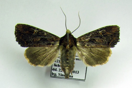 Op het doek verschenen enkele exemplaren van een nieuwe soort voor ons, namelijk Apamea aquila (Pijpenstro-uil). Deze uil lijkt sterk op de in de oostelijke helft van Friesland algemeen voorkomende Apamea crenata, maar is te onderscheiden door een zwarte streepvormige vlek bij de vleugelwortel. Bij A. crenata is bovendien vaak een bruine kleur zichtbaar op de voorvleugel, hetgeen bij A. aquila niet het geval is.A. quila is een vrij zeldzaam voorkomende soort. Hij is bekend uit o.a. de Peel en is in het verleden waargenomen in de veengebieden van het noorden van het land. Op de verspreidingskaartjes van Vlindernet staat een opvallende waarneming in Leeuwarden; we zullen proberen in de collectie van het Natuurmuseum Friesland te achterhalen of deze determinatie juist is.